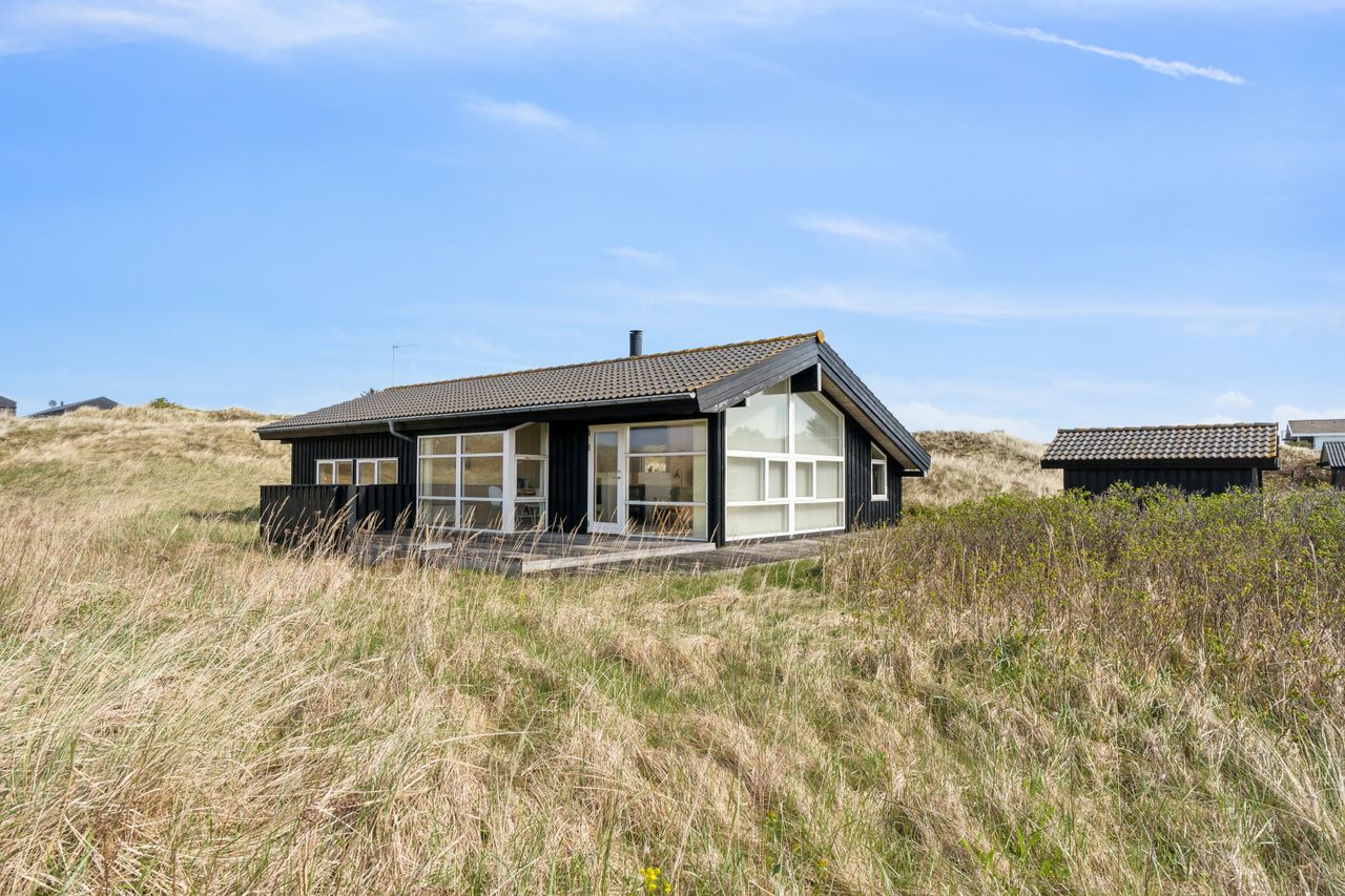 Dette sommerhus har en af de allerbedste beliggenheder i Øster Tversted. Fra huset er der imponerende udsigt ud over de flotte let kuperede lyngbakker og til Vesterhavet. Ejendommen ligger samtidig ganske ugenert med en rigtig god afstand til naboer. Omkring huset er der terrasser.
