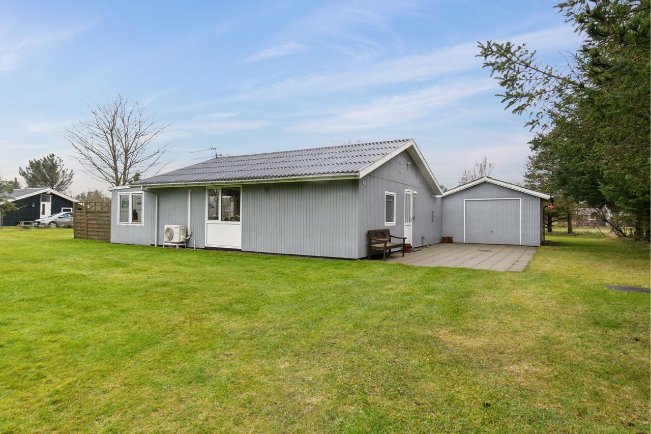 døre(kun udgangen fra terrassen er i træ), næsten nyt ståltag og hvide plasttagrender. Det er i sin