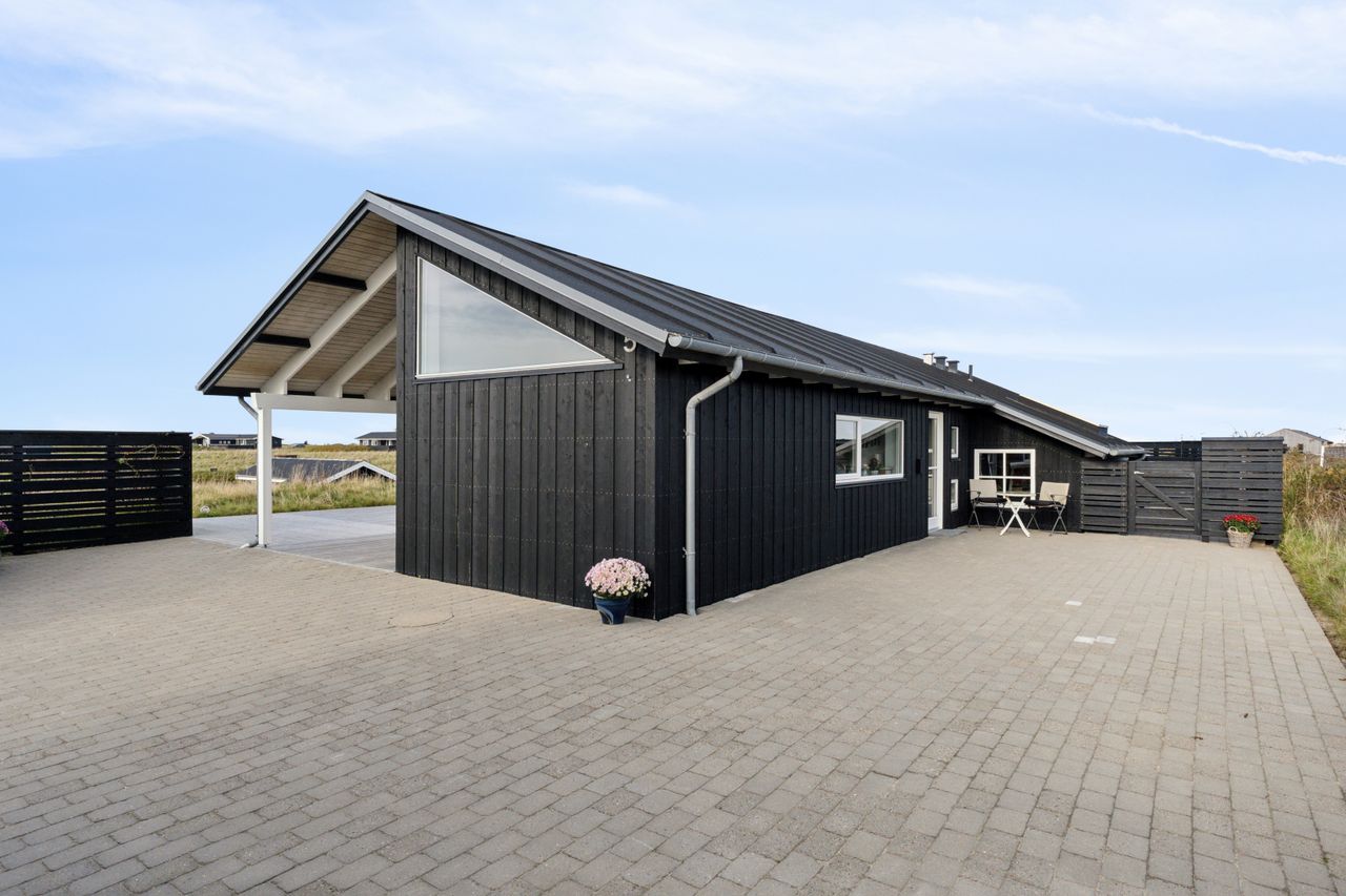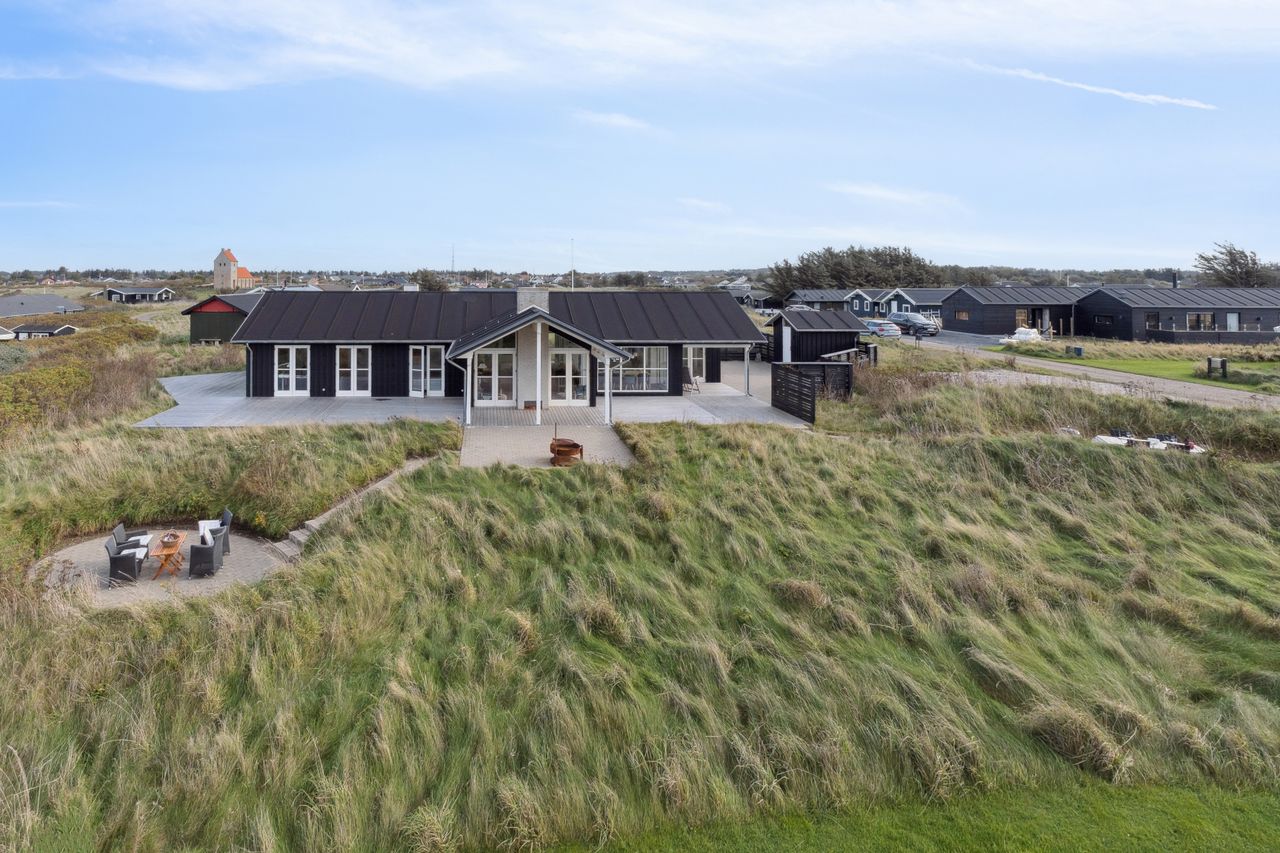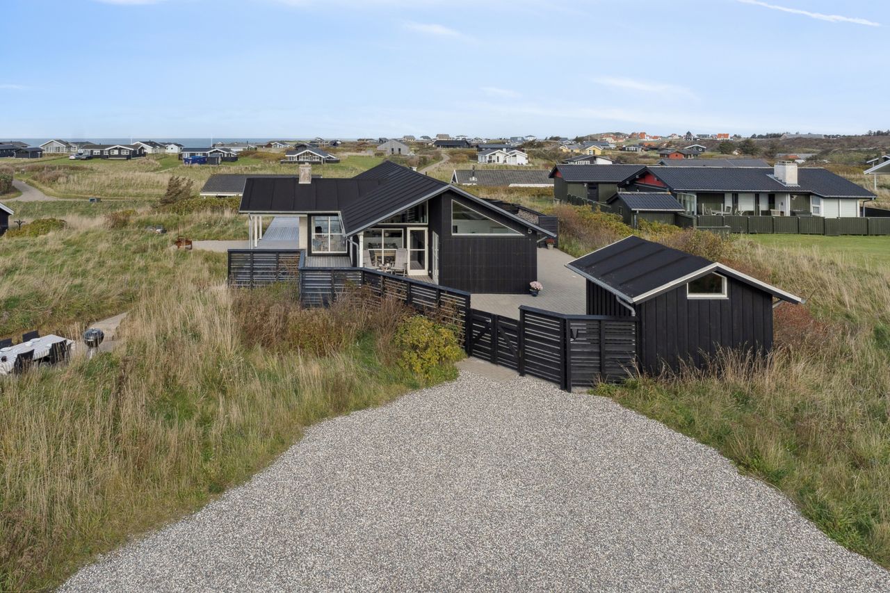 Det store flotte sommerhus er opført i 2009. Her er hele 151 m2 med alt i udstyr. Her er jordvarmeanlæg med vandbåren gulvvarme i hele huset. Flot adgangsforhold med flisebelagt terrasseareal, som leder sig hen til huset entre. Her åbnes op til huset store og lyse alrum, hvor spiseafdelingen ligger op mod det flotte køkken fra 2024. Herfra udgang til den store overdækkede terrasse mod syd og i sammenhæng hele vejen rundt mod vest til nord. Ude på grunden er der små stier, som leder hen til 2 hyggelige nedfældede terrasser, som er bygget ind i klitlandskabet. Her indrettet med middags afdeling på den ene og lounge og hygge på den anden. Den store nybyggede træterrasse giver mulighed for at følge solen hele dagen. Her ender man til sidst på nordlige side hvor der er adgang til lækkert og privat udebruser og nem adgang ind og ud af huset.