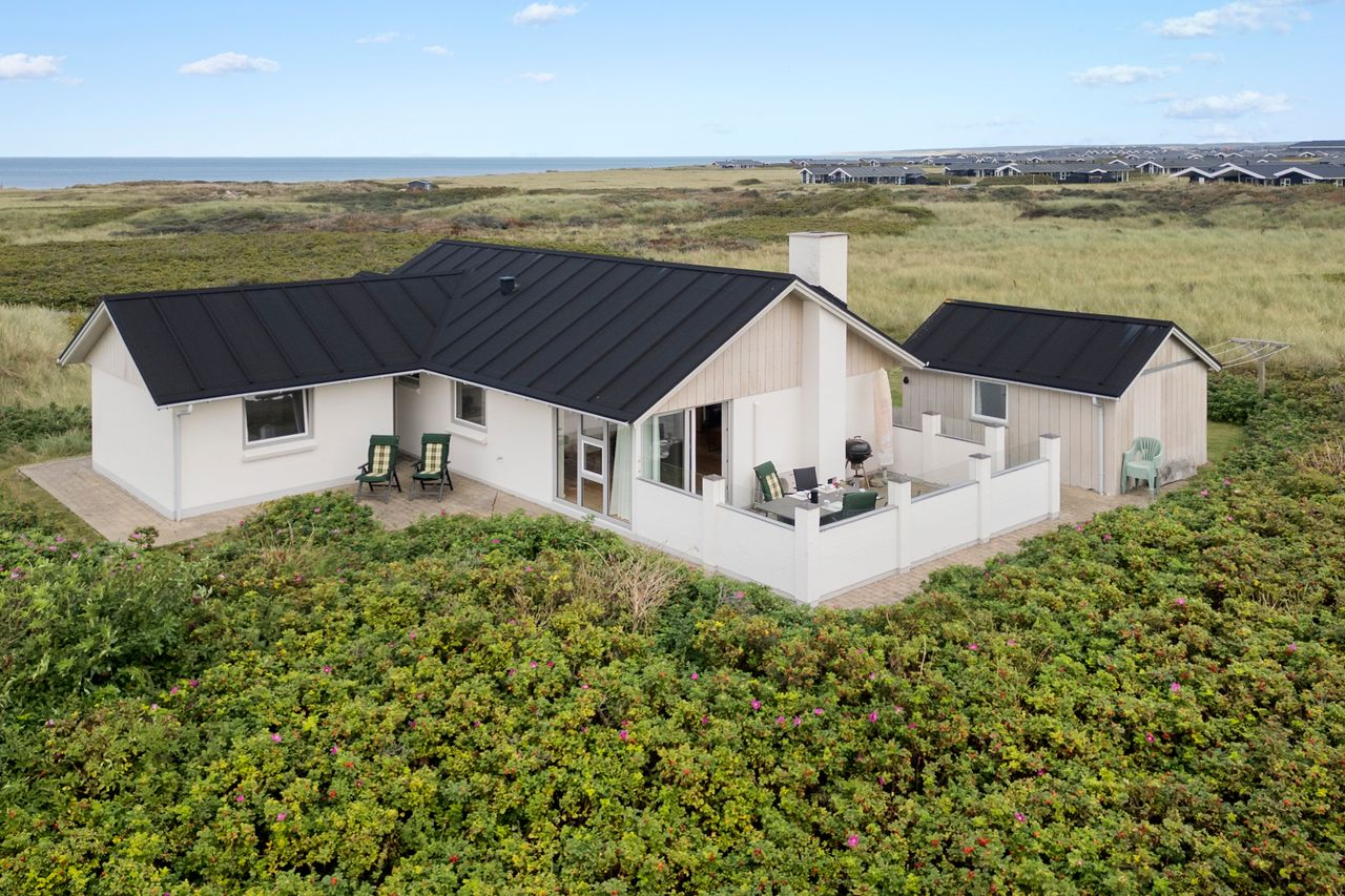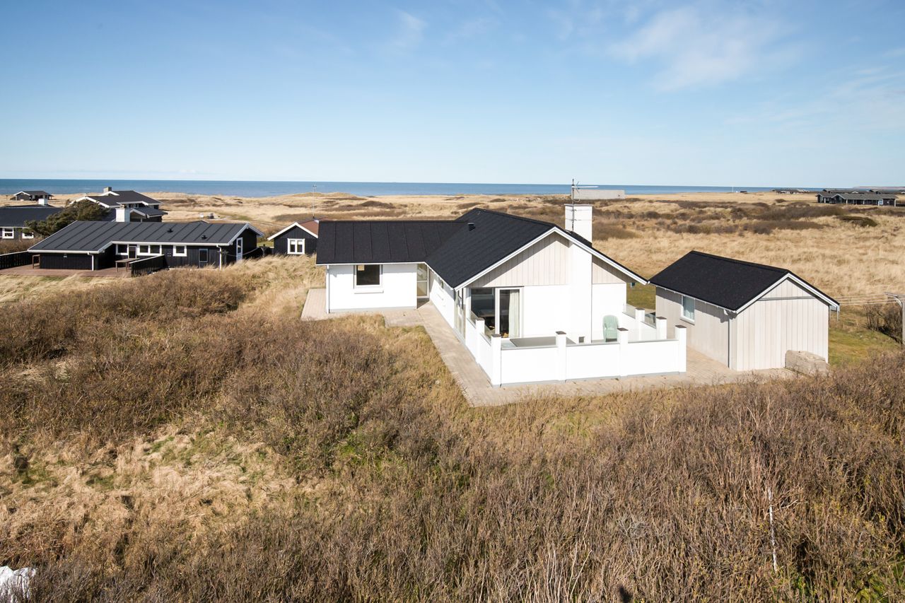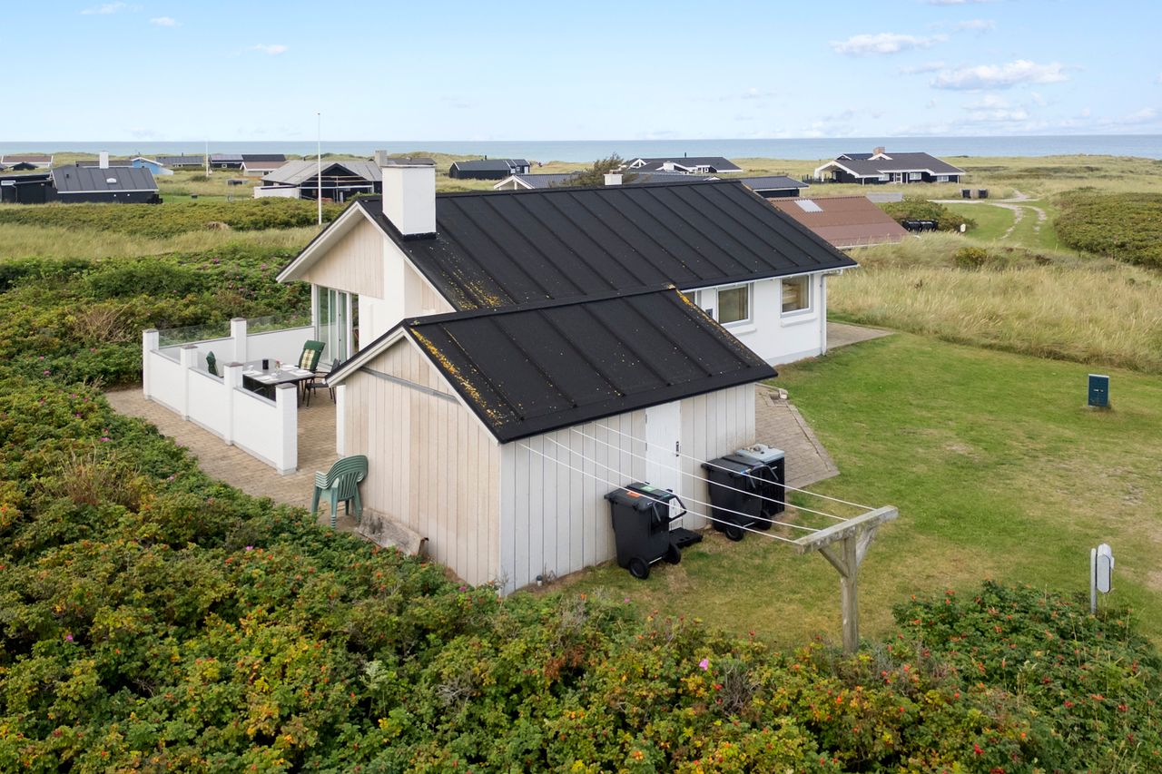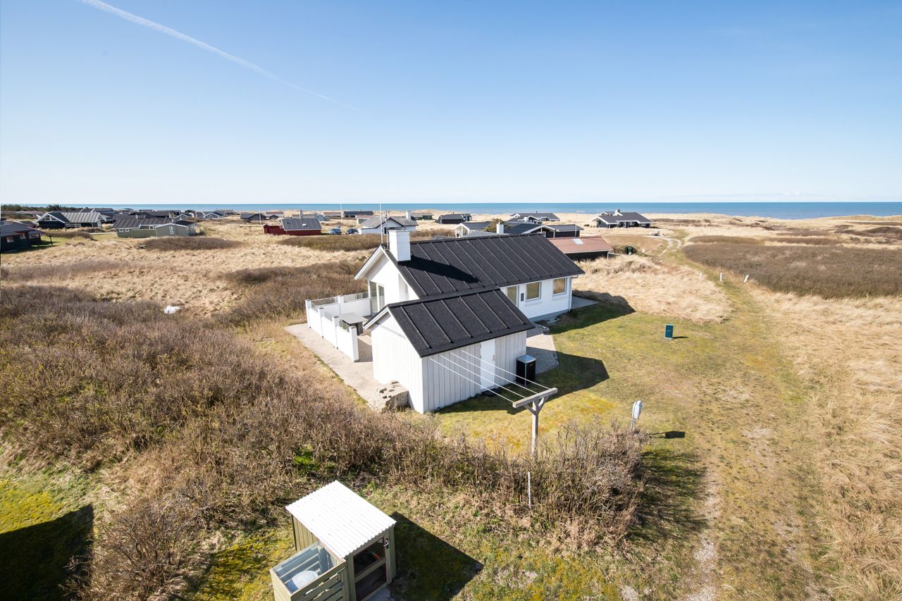 Her er udsigt til indlandsklitten og huset er beliggende i klitter og marhalm. Der er ca. fem minutters gang til badestranden.