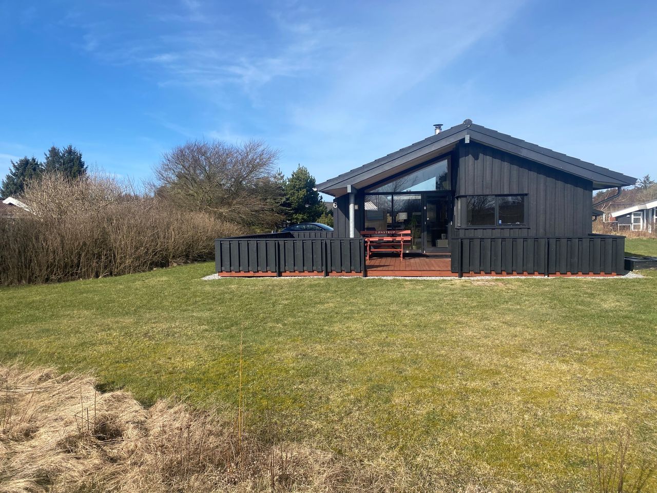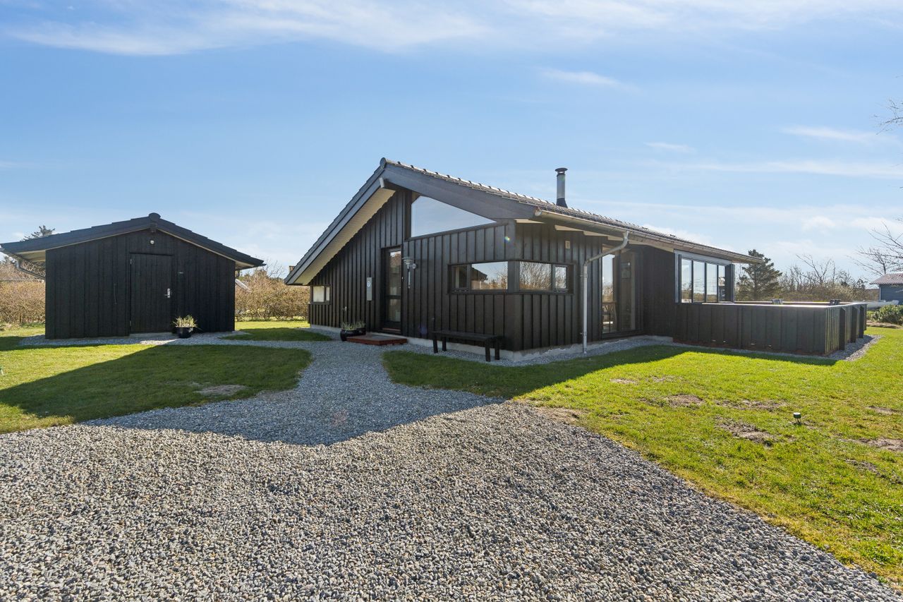 Det fantastiske sommerhus er opført i 2015 af Sonne Huse. Huset er smagfuldt indrettet i skandinavisk stil. Vi har at gøre med et kvalitetshus, der fremstår fuldstændig perfekt overalt. Der er kræset for detaljerne og alt er i god kvalitet. Der er 85 kvadratmeter helårsisoleret bolig. I sommermånederne er husets midtpunkt den 55 kvadratmeter store, delvist overdækkede terrasse, der giver sol fra øst, syd og vest.
