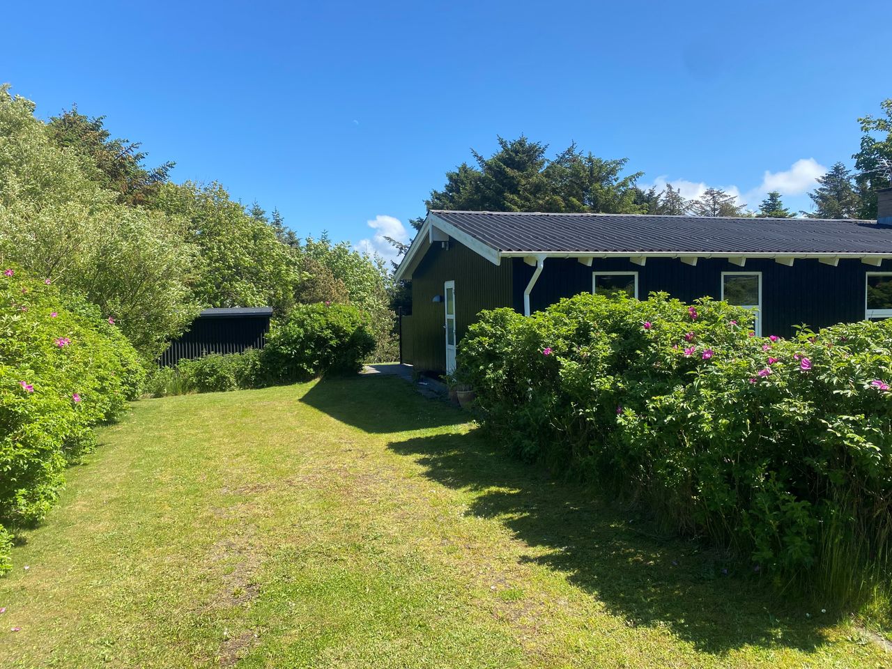 Sommerhuset ligger på en stor havegrund med god plads til at lege og spille bold.