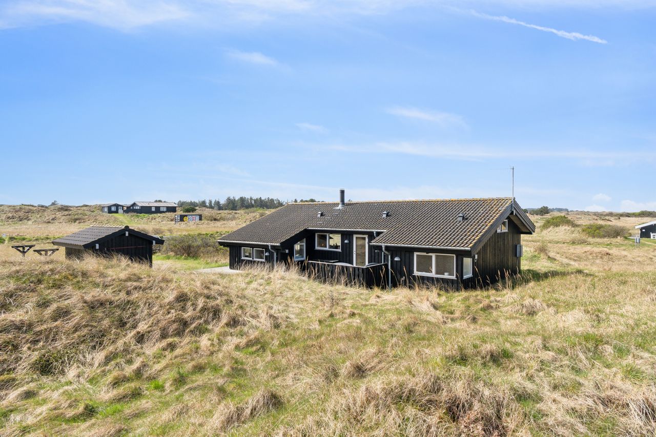 Dette sommerhus har en af de allerbedste beliggenheder i Øster Tversted. Fra huset er der imponerende udsigt ud over de flotte let kuperede lyngbakker og til Vesterhavet. Ejendommen ligger samtidig ganske ugenert med en rigtig god afstand til naboer. Omkring huset er der terrasser.