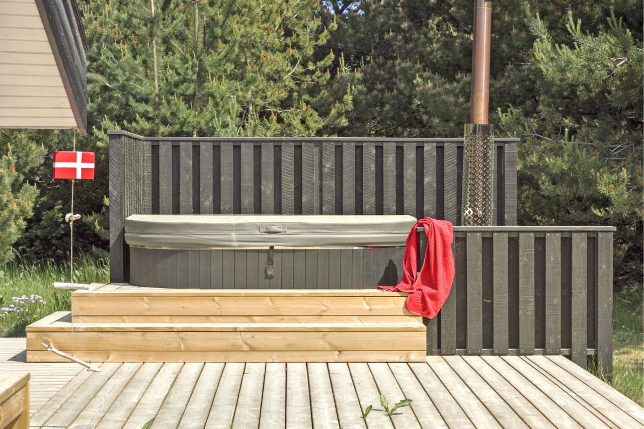 terrassearealer, bl.a. med et dejligt vildmarksbad, hvor man tænder op i den tilknyttede brændeovn, og så