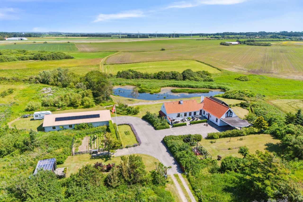 Grunden er pænt stor med egen sø og gode, tilvoksede omgivelser, der ikke behøver alverden af pleje. En mark er udlejet til en nærtboende landmand. Ved søen kan man være heldig at se fiskehejrer på jagt efter frøer eller småfisk og i øvrigt er der en del rådyr på egnen, som ikke føler sig for gode til at komme ind i haven og nippe af de friske skud ved skumringstide.