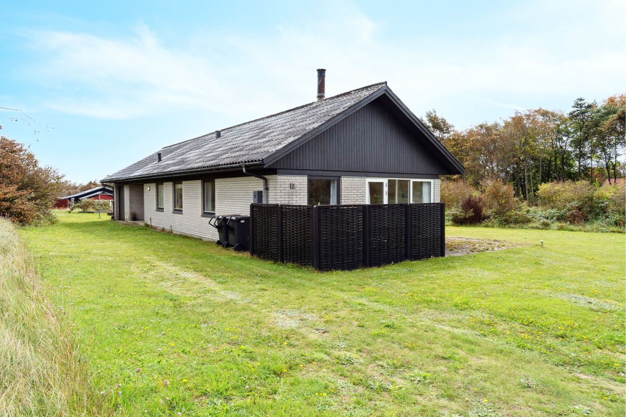 Huset er et længehus i et plan med indbygget garage i den østlige ende. Det er bygget i kalksandsten og isoleret som et helårshus skulle på byggetidspunktet. Taget er i fibercement/eternit og der er zinktagrender. Udhæng og vinduer er sortmalede, dog er det nye vinduesparti i stuen og en terrassedør hvidmalede. Badeværelset er renoveret for nogle år siden. Det indeholder toilet, bruseniche og et lille skabsarrangement med håndvask. Der er 4 soverum i huset og i alt 10 sovepladser. Garagen benyttes som bryggers og er ellers mest til opbevaring af diverse havemøbler o.m.a.