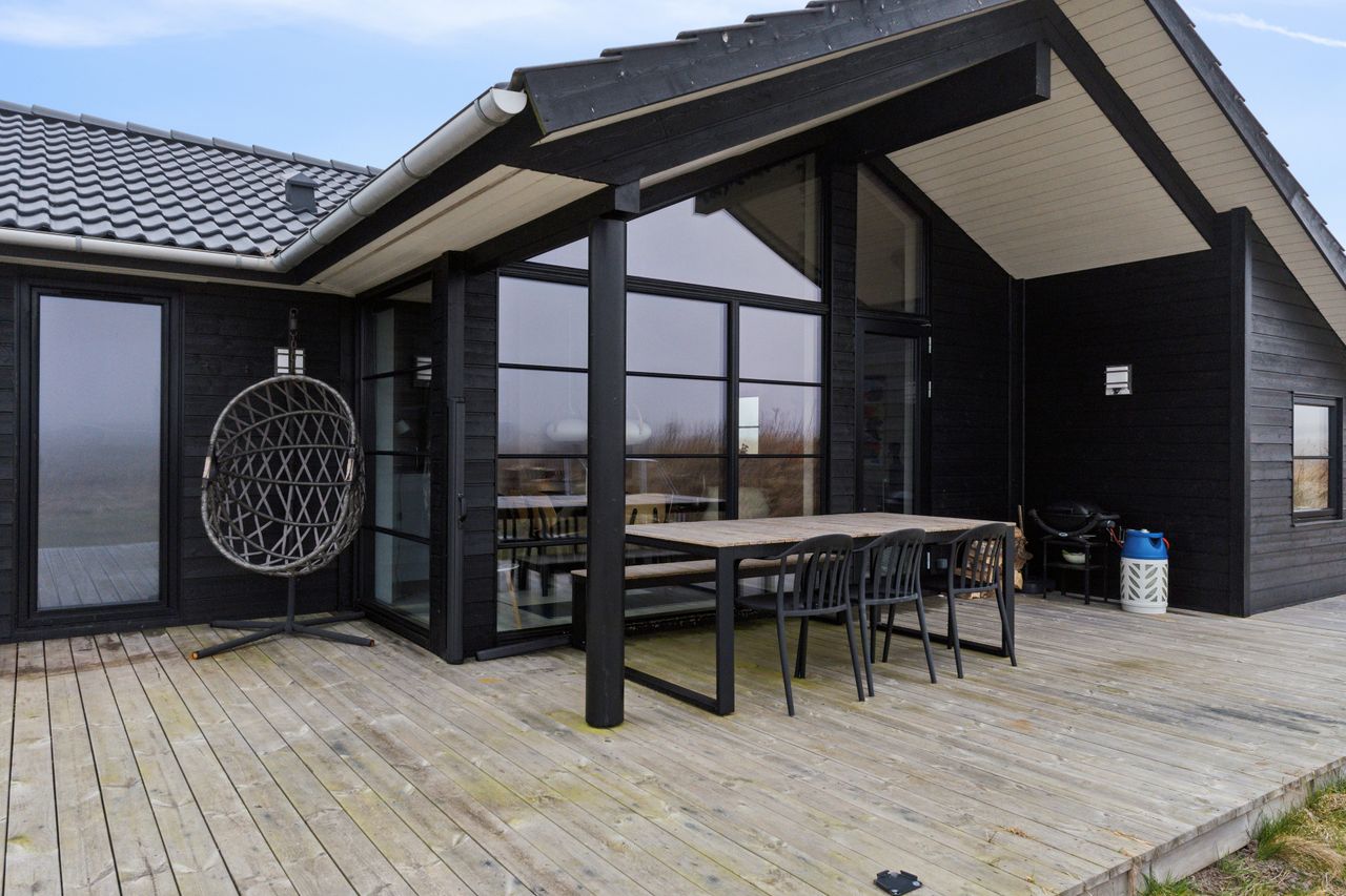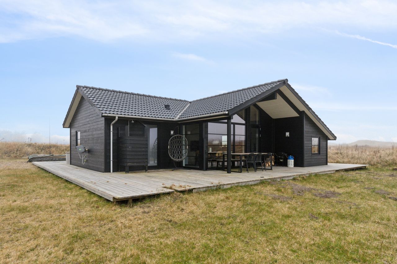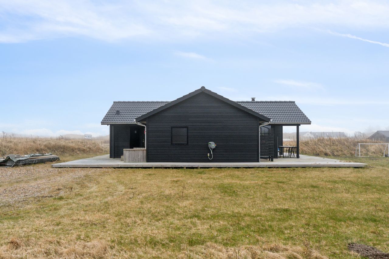 Nybygget EBK fritidshus fra 2020. Flot udført i sortmalet klink beklædning med sorte træ/alu vinduer. Skønne sol terrasser rundt hele huset, så der kan findes sol og læ hele dagen - mod syd også overdækket, med ind og udgang til og fra stuen. Huset er indvendigt med loft til kip og store vinduespartier, som giver et fantastisk lysindfald gennem hele huset. Moderne køkken i åben forbindelse med rummelig stue og spiseafdeling. Et hjørne er indrettet med hyggelig alkove stemning. 3 gode værelser og 2 badeværelser. Panoramavinduer mod syd, hvorfra der også er udgang til den store terrasse som går hele vejen rundt huset.