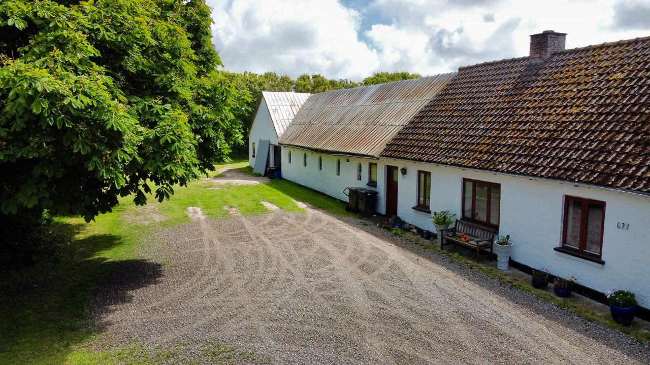 Ejendommen, der oprindeligt udgør et husmandssted, består i dag af et muret stuehus med en vinkelret staldbygning. Hele bygningssættet er hvidmalet/kalket. Stuehuset har tag i cementstentegl og staldbygningen har tag af pandeplader. Boligen, der er på 104 m2 har et stort køkken med spiseplads, stor stue, fire værelser og et badeværelse. Der er en charmerende og hyggelig stemning overalt i huset. Ladens 119 m2 kan bl.a. anvendes til hobbydyrehold. Opvarmningen sker med fjernvarme.