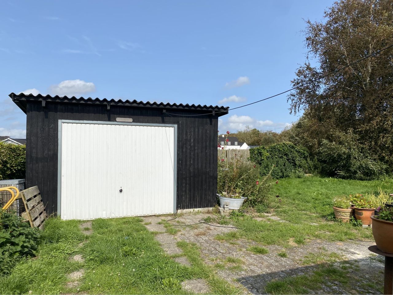 garagen, der ligger bagest på grunden. Alt i alt en overkommelig grund uden ret meget arbejde. Der
