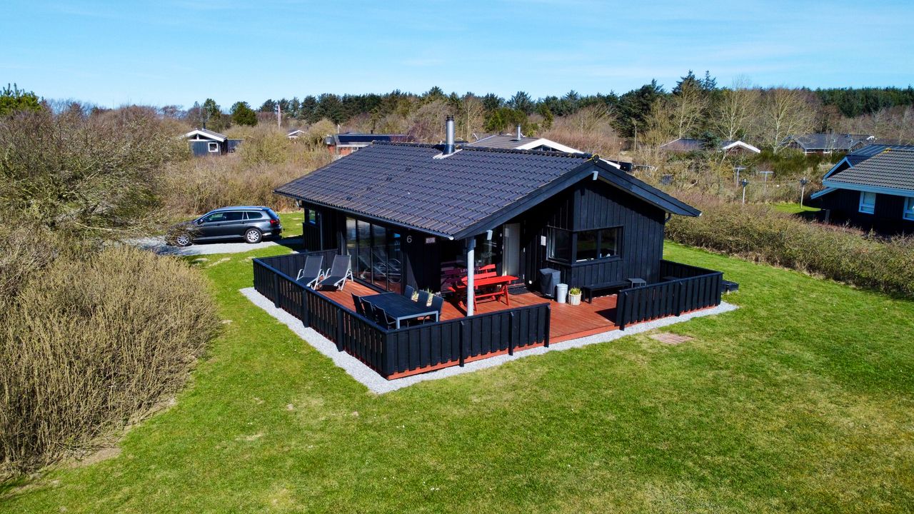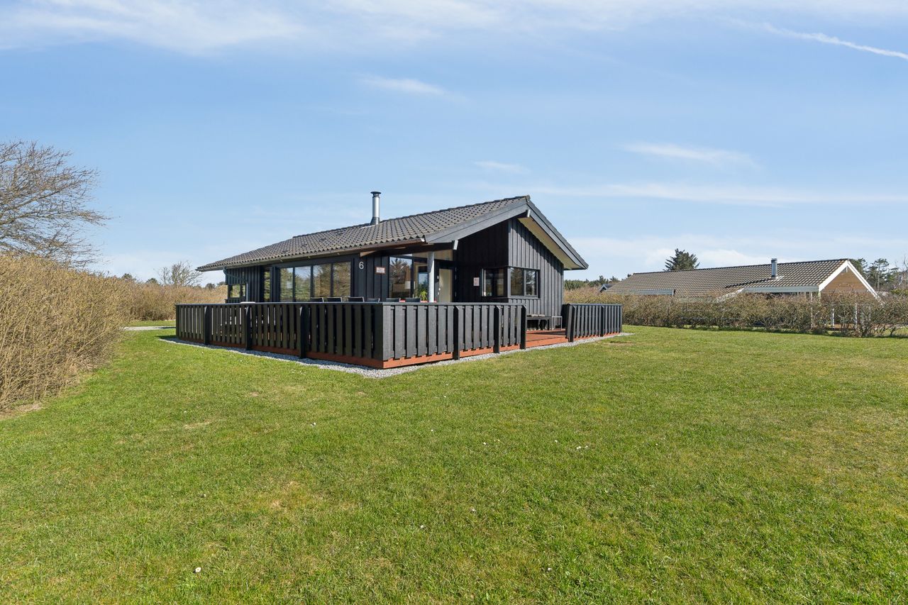 Det fantastiske sommerhus er opført i 2015 af Sonne Huse. Huset er smagfuldt indrettet i skandinavisk stil. Vi har at gøre med et kvalitetshus, der fremstår fuldstændig perfekt overalt. Der er kræset for detaljerne og alt er i god kvalitet. Der er 85 kvadratmeter helårsisoleret bolig. I sommermånederne er husets midtpunkt den 55 kvadratmeter store, delvist overdækkede terrasse, der giver sol fra øst, syd og vest.