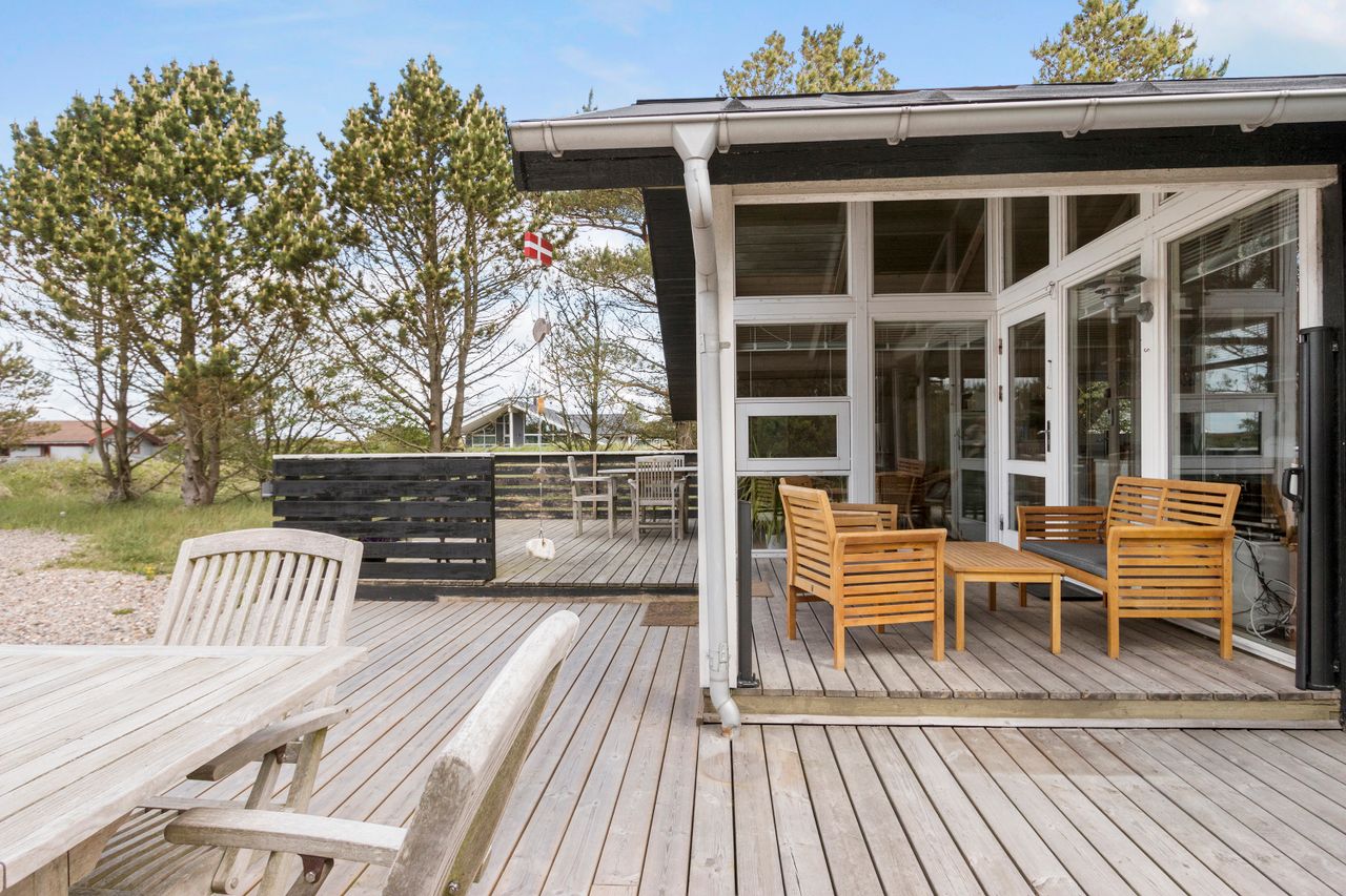 Et rigtig dejligt, lyst og indbydende sommerhus med 2 afdelinger og stor terrasse som binder det hele sammen.