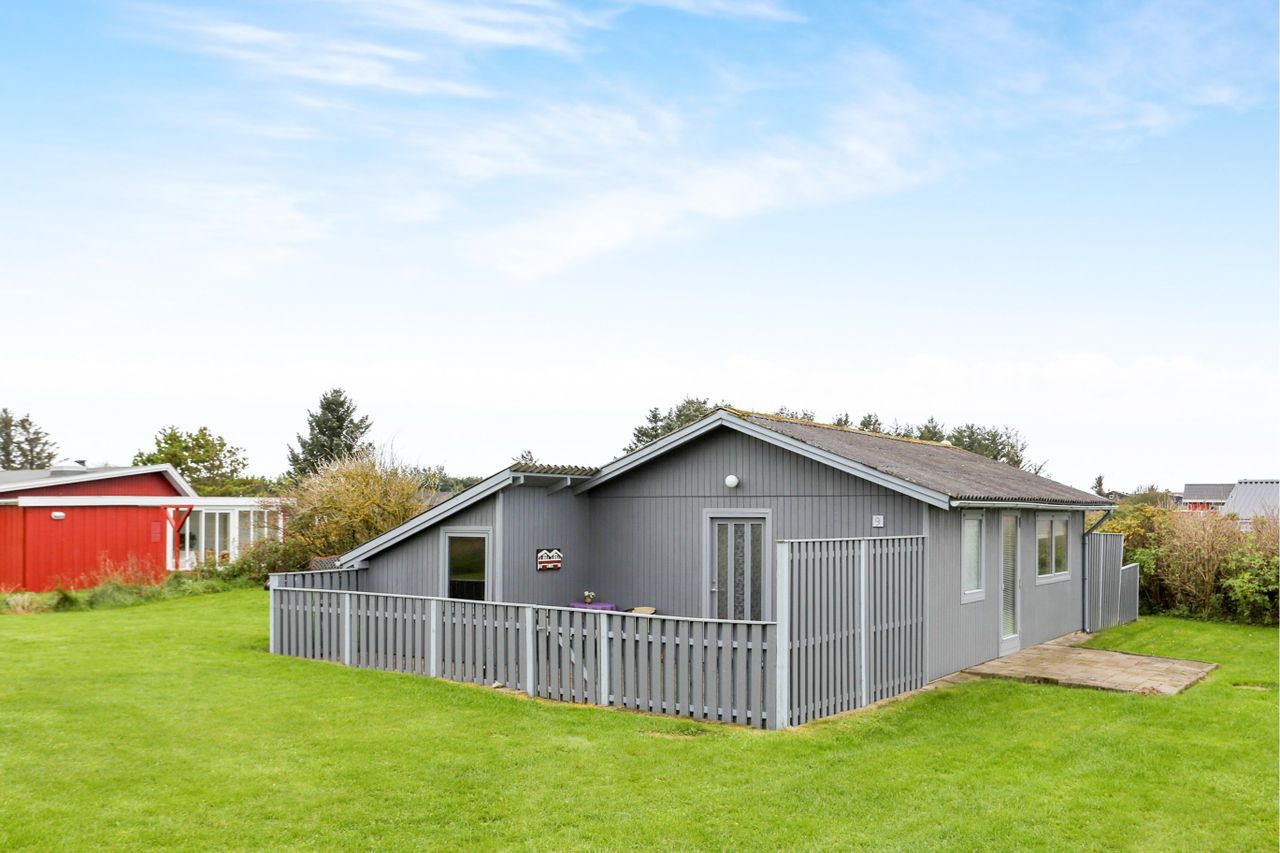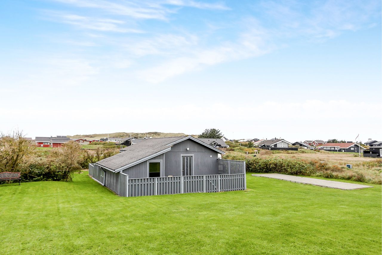 minutters gang til stranden og bycentrum. Grunden er udlagt med græs, og de indhegnede terrasser mod