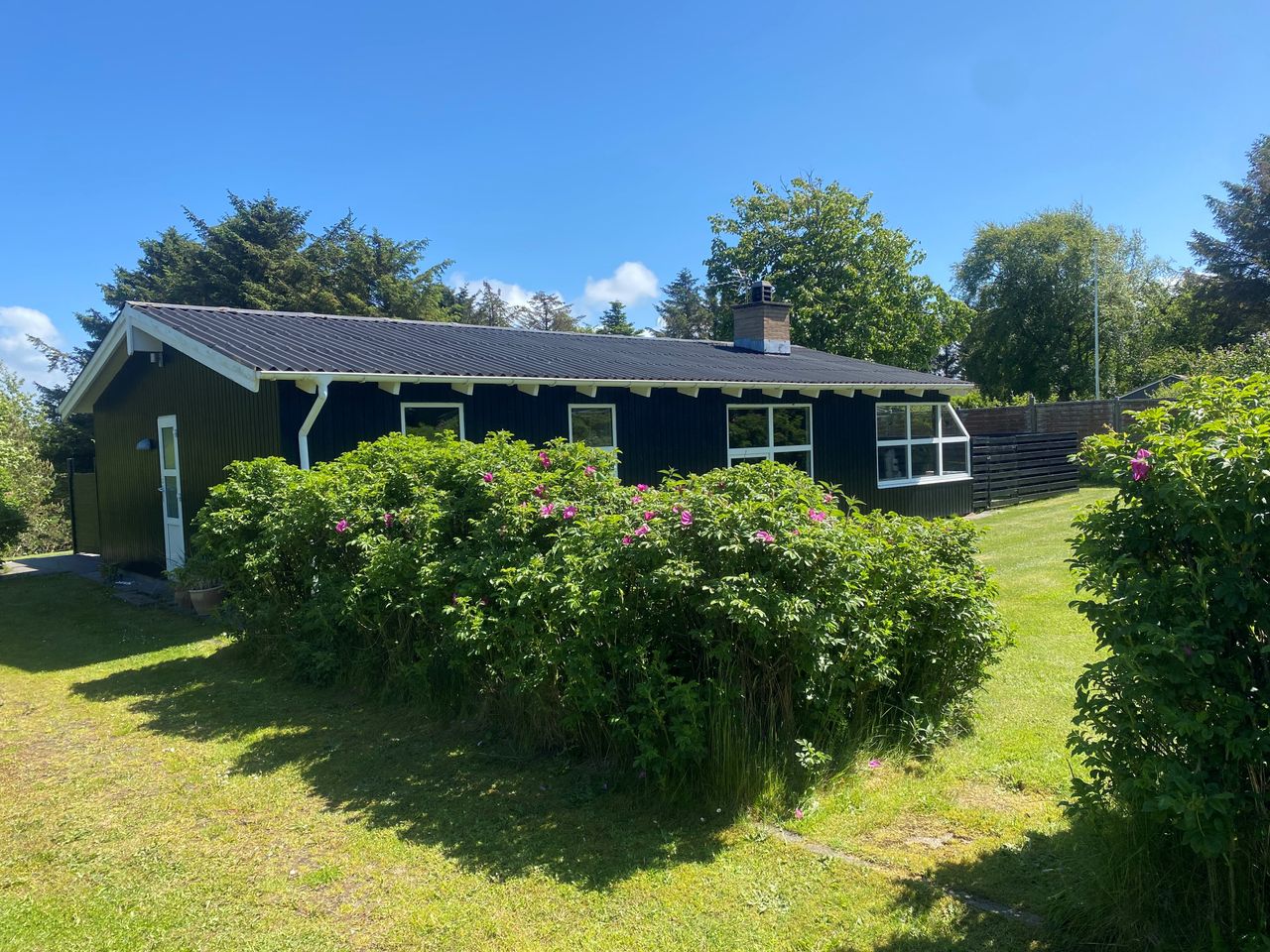 Sommerhuset ligger på en stor havegrund med god plads til at lege og spille bold.